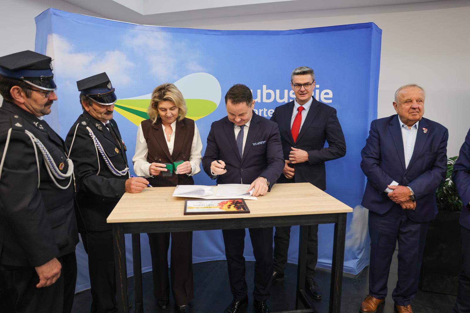 W poniedziałek, 3 listopada 2025 r. w Biurze Zamiejscowym Urzędu Marszałkowskiego Województwa Lubuskiego przy ul. Walczaka w Gorzowie Wlkp. marszałek Sebastian Ciemnoczołowski podpisał umowy na wsparcie działalności strażaków. Umowy podpisali przedstawiciele gmin: Cybinka, Deszczno, Dobiegniew, Drezdenko, Krzeszyce, Lubiszyn, Santok, Stare Kurowo, Witnica.