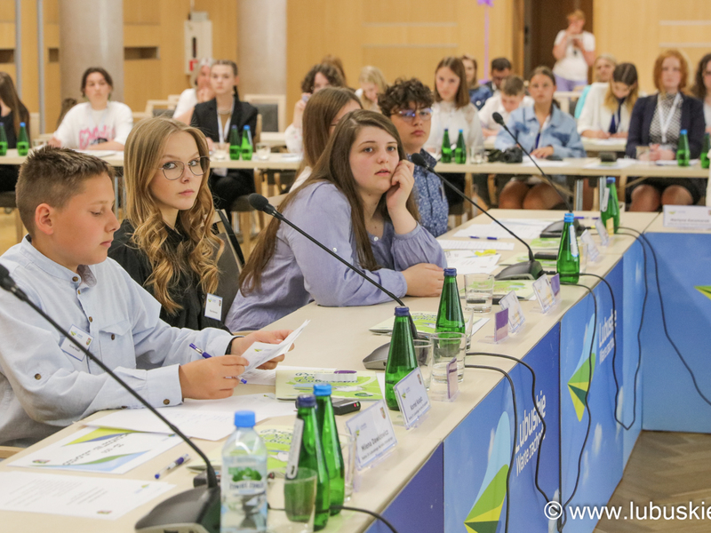Dziecięcy radni przyjechali do Urzędu Marszałkowskiego Województwa Lubuskiego w Zielonej Górze m.in. z Żar, Dąbia, Babimostu, Gorzowa Wlkp. czy Trzebiechowa. Obradowali w poniedziałek, 3 czerwca 2024 r. w Sali Kolumnowej Sejmiku Województwa Lubuskiego w siedzibie Urzędu Marszałkowskiego. Wcześniej dzieci i młodzież wzięły udział w spotkaniu z marszałkiem województwa lubuskiego Marcinem Jabłońskim, przewodniczącą Sejmiku Województwa Lubuskiego Anną Synowiec oraz wiceprzewodniczącą Sejmiku Anną Chinalską.