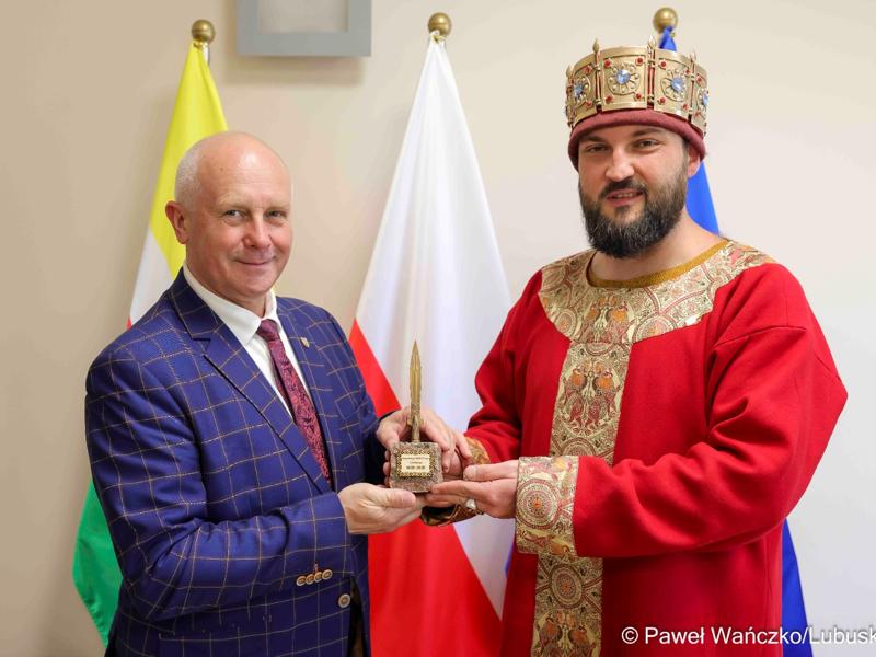 Wicemarszałkowie zakończyli swoje przemówienia przekazaniem upominków dla prezydenta Zielonej Góry i jego zastępców.