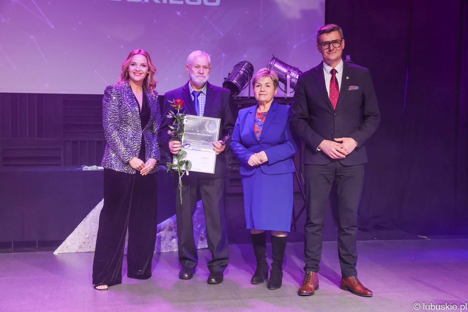 Od 2018 roku Pan Krzysztof Stróżański przygotował w ramach wspomnianego Teatru aż jedenaście premier teatralnych - zarówno z udziałem młodzieży, jak i dorosłych, w tym seniorów. Znaczna część tych przedstawień została z powodzeniem zaprezentowana na przeglądach, konkursach i wydarzeniach kulturalnych o zasięgu wojewódzkim, m.in. w Sulechowie (Lubuska Gala Teatralna, Lubuskie Konfrontacje Teatralne), Nowej Soli, Sulęcinie, Bogdańcu czy Kostrzynie nad Odrą. Spektakle Teatru „Pod Trzema Gwiazdami” nie tylko uzyskiwały wyróżnienia i nagrody, ale również cieszyły się uznaniem publiczności i były istotnym głosem w społecznej dyskusji o problemach młodzieży i relacjach międzypokoleniowych (np. spektakle „Epilog", „Referent" czy „Skrzydełka'). Dzięki jego pracy artystycznej Torzym stał się rozpoznawalnym punktem na mapie teatralnej województwa przyciągając uwagę zarówno lokalnych instytucji kultury, jak i środowisk teatralnych z innych miast Lubuskiego. Warto podkreślić, że działalność Pana Stróżańskiego obejmuje również animację środowisk dorosłych i seniorów - prowadzi Teatr „Trzy po Trzy” w ramach Torzymskiej Akademii Umiejętności Trzeciego Wieku. Dzięki swojemu bogatemu doświadczeniu, zaangażowaniu i pasji, Pan Krzysztof Stróżański w sposób trwały wpisuje się w krajobraz kulturalny Województwa Lubuskiego, tworząc sztukę zakorzenioną lokalnie, ale wybrzmiewającą na forum wojewódzkim. Wysokość nagrody 10.000,00 zł brutto, potwierdzona statuetką i dyplomem.