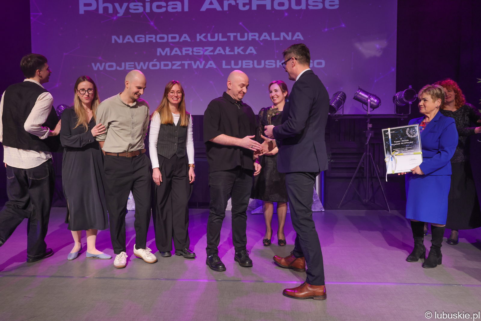 Teatr Tańca Physical ArtHouse, działający pod kierunkiem artystycznym dr. Marka Zadłużnego, to nie tylko zespół artystyczny odnoszący sukcesy w Polsce i za granicą, ale również ważny organizator wydarzeń kulturalnych w województwie lubuskim, konsekwentnie wzbogacający i promujący życie kulturalne regionu. Od pięciu edycji Physical ArtHouse jest organizatorem Międzynarodowego Festiwalu Tańca Współczesnego „move festival Zielona Góra” – przedsięwzięcia o wyjątkowym znaczeniu dla promocji regionu, które skutecznie buduje markę „Lubuskie warte zachodu”. Dzięki festiwalowi Zielona Góra staje się miejscem spotkań artystów tańca współczesnego z całej Polski oraz z zagranicy. Co roku wydarzenie gromadzi wybitnych choreografów, pedagogów i performerów, a mieszkańcy regionu mają niepowtarzalną okazję do uczestnictwa w prezentacjach spektakli na najwyższym poziomie artystycznym. Integralną częścią programu są również bezpłatne warsztaty taneczne, skierowane zarówno do dzieci i młodzieży, jak i do dorosłych mieszkańców województwa. Od dwóch lat Physical ArtHouse prowadzi także cykliczny projekt „Scena dla Tańca w Domu Harcerza”, organizowany raz w miesiącu w Zielonej Górze. W jego ramach prezentowane są spektakle tańca współczesnego, po których odbywają się rozmowy z publicznością prowadzone przez uznane badaczki i krytyczki polskiego tańca - dr Annę Królicę oraz dr Martę Seredyńską. Projekt ten nie tylko rozwija lokalne życie kulturalne, ale również kształtuje świadomego i aktywnego odbiorcę sztuki współczesnej, czyniąc z Zielonej Góry ważny punkt na mapie polskiego tańca. Physical ArtHouse nie tylko promuje region, lecz także realnie współtworzy jego życie kulturalne i integruje lokalną społeczność wokół sztuki współczesnej. Wysokość nagrody 10.000,00 zł brutto, potwierdzona statuetką i dyplomem.