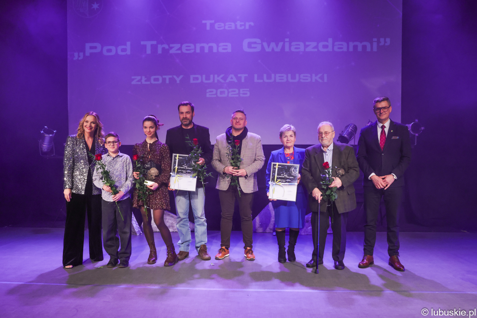 Teatr „Pod Trzema Gwiazdami” to wyjątkowa inicjatywa artystyczna o wyraźnym i wielowymiarowym charakterze wojewódzkim, której rozwój i działalność znacząco wzbogacają krajobraz kulturalny województwa lubuskiego. Grupa, działająca od 2018 roku przy Torzymskim Ośrodku Kultury, stworzyła unikalną przestrzeń artystyczną, w której spotykają się różne pokolenia - młodzież i dorośli - by wspólnie rozwijać swoje pasje teatralne i współtworzyć ambitne, wielokrotnie nagradzane spektakle. Wojewódzki wymiar działalności Teatru przejawia się zarówno w zasięgu terytorialnym (regionalnym) prezentowanych przedstawień, jak i w systematycznym udziale w najważniejszych wydarzeniach teatralnych regionu. Od początku istnienia zespół aktywnie uczestniczy w Lubuskiej Gali Teatralnej oraz w Lubuskich Konfrontacjach Teatralnych, gdzie zdobywał wyróżnienia (m.in. w 2019 i 2023 roku), a jego spektakle były prezentowane poza terenem gminy Torzym w miastach takich jak Sulechów, Sulęcin, Nowa Sól, Kostrzyn nad Odrą czy Zielona Góra. Teatralna obecność grupy nie ogranicza się do macierzystego Torzymia - przeciwnie, jej spektakle cieszą się uznaniem i zainteresowaniem widzów na terenie całego województwa, o czym świadczą liczne zaproszenia i występy na scenach domów kultury oraz bibliotek, m.in. w Bogdańcu czy Sulęcinie. Na uwagę zasługuje fakt, że zespół stale poszukuje nowych środków wyrazu i różnorodnych form scenicznych - od widowisk patriotycznych, przez adaptacje klasyki literatury polskiej i europejskiej, aż po spektakle o wymowie społecznej i edukacyjnej (np. Epilog czy Skrzydełka). Zespół Teatru „Pod Trzema Gwiazdami" to zatem nie tylko ważny ośrodek lokalny, ale i rozpoznawalny podmiot na mapie teatralnej województwa lubuskiego - konsekwentnie budujący swoją markę poprzez wysoką jakość artystyczną, społeczne zaangażowanie, międzypokoleniową integrację oraz aktywny udział w życiu kulturalnym regionu. Nagroda potwierdzona statuetką i dyplomem.