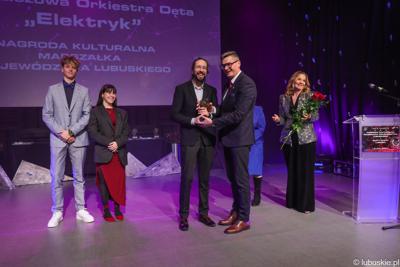 Młodzieżowa Orkiestra Dęta „Elektryk” z Nowej Soli od ponad pięciu dekad stanowi wyjątkową instytucję kultury i edukacji muzycznej, a zarazem ambasadora Nowej Soli, Powiatu Nowosolsiego (szkołę prowadzi Starostwo) województwa lubuskiego w kraju i na świecie. Warto dodać, że zespół reprezentował nasz region na EXPO w Hanowerze, jarmarku w Brukseli, Dniach Brandenburgii, Targach Turystycznych i dniach otwartych Federalnego Ministerstwa Transportu i Infrastruktury Cyfrowej w Berlinie, festiwalach w Barcelonie, Malgart de Mar oraz koncertach w Fürstenwalde, Iwano-Frankowsku, Lwowie i na Krymie. Równie ważna, jak sukcesy konkursowe, jest działalność społeczno-kulturalna orkiestry. Zespół od lat współtworzy pejzaż artystyczny Nowej Soli - otwiera Święto Solan, koncertuje w muszli koncertowej w Parku Odry, bierze udział w uroczystościach miejskich, powiatowych i wojewódzkich. Dzięki temu nie tylko promuje muzykę, ale również integruje społeczność lokalną i kształtuje kolejne pokolenia młodych muzyków. Młodzieżowa Orkiestra Dęta „Elektryk” to przykład wieloletniej pracy artystycznej, edukacyjnej i wychowawczej, a także niezwykłego ambasadora kultury Nowej Soli i całego regionu. Łącząc tradycję z nowoczesnością, zespół rozsławia polską muzykę orkiestrową na arenie krajowej i międzynarodowej. Wysokość nagrody 10.000,00 zł brutto, potwierdzona statuetką i dyplomem.