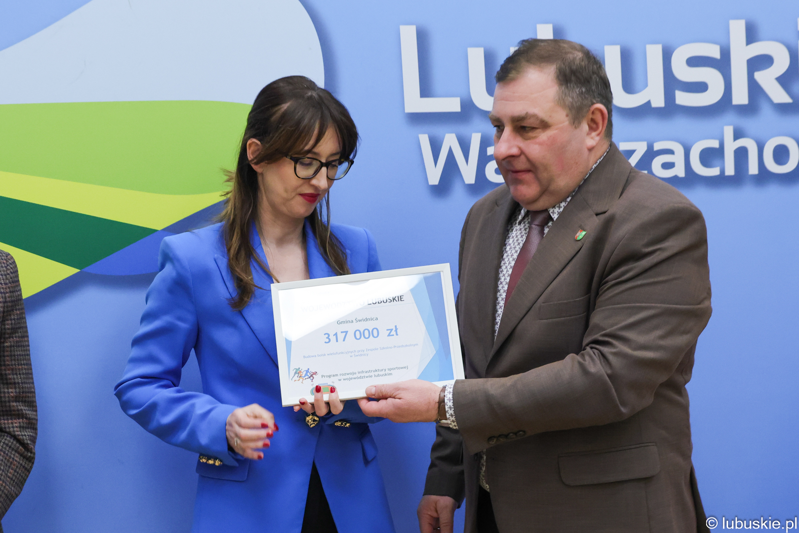 Powiat Krośnieński otrzymał wsparcie w wysokości 135 000,00 zł. Środki przeznaczoną na modernizację sali gimnastycznej Europejskiego Centrum Kształcenia Zawodowego i Ustawicznego w Gubinie. Przedstawiciele powiatu odwiedzili urząd w dniu 2 grudnia 2025 r. Starosta Krośnieńska Anna Januszkiewicz i wicestarosta krośnieński Ryszard Zakrzewski odebrali od wicemarszałka Grzegorza Potęgi symboliczny czek w obecności radnego województwa Leszka Turczyniaka.