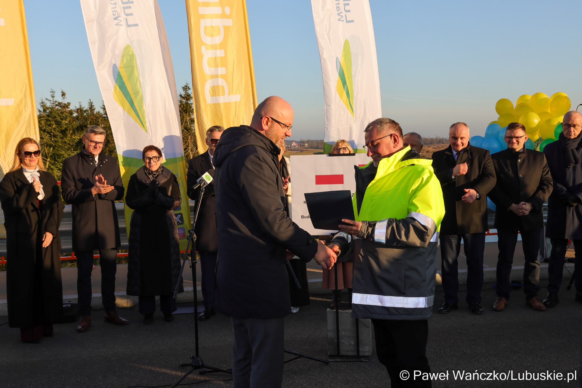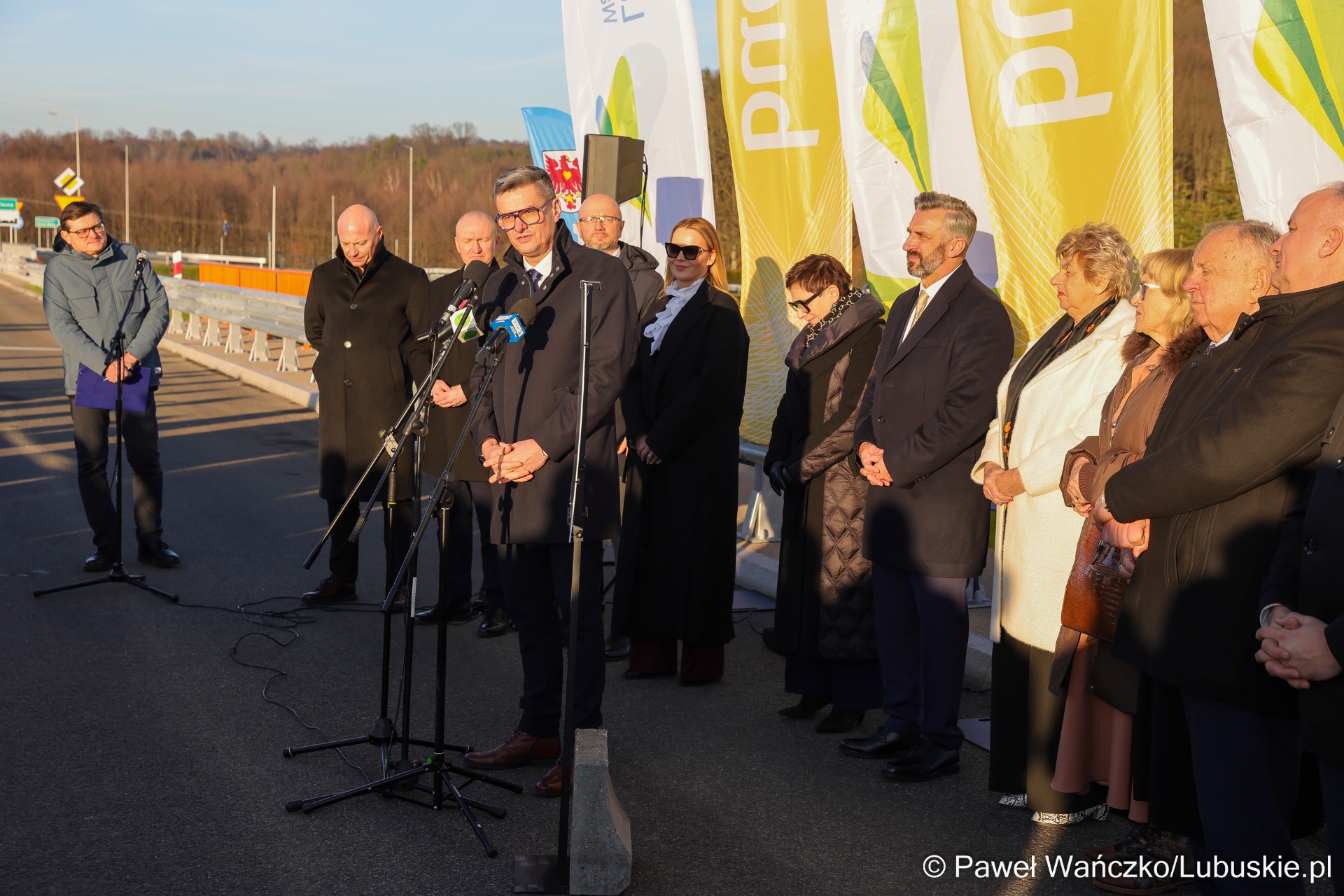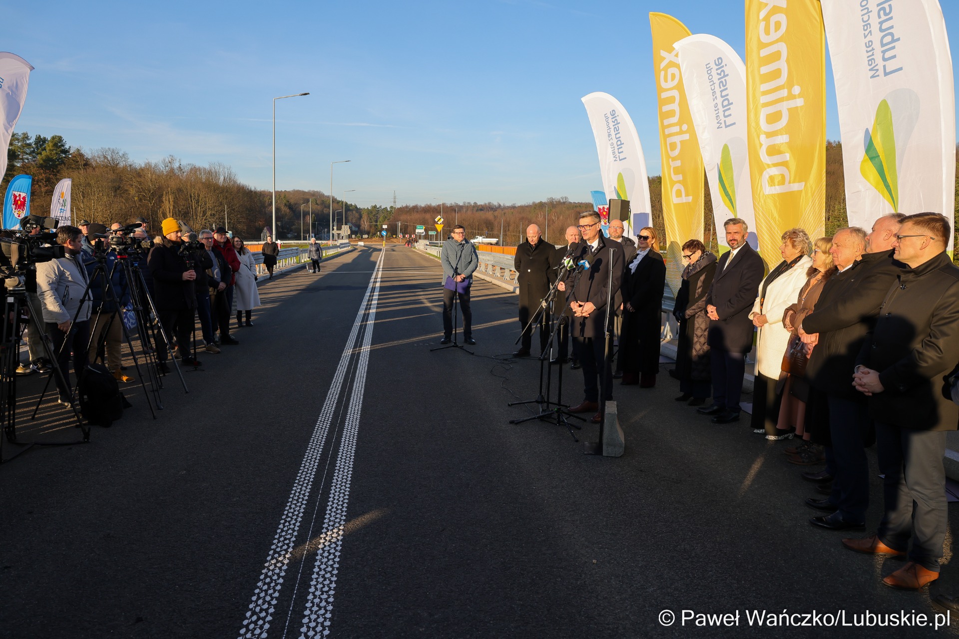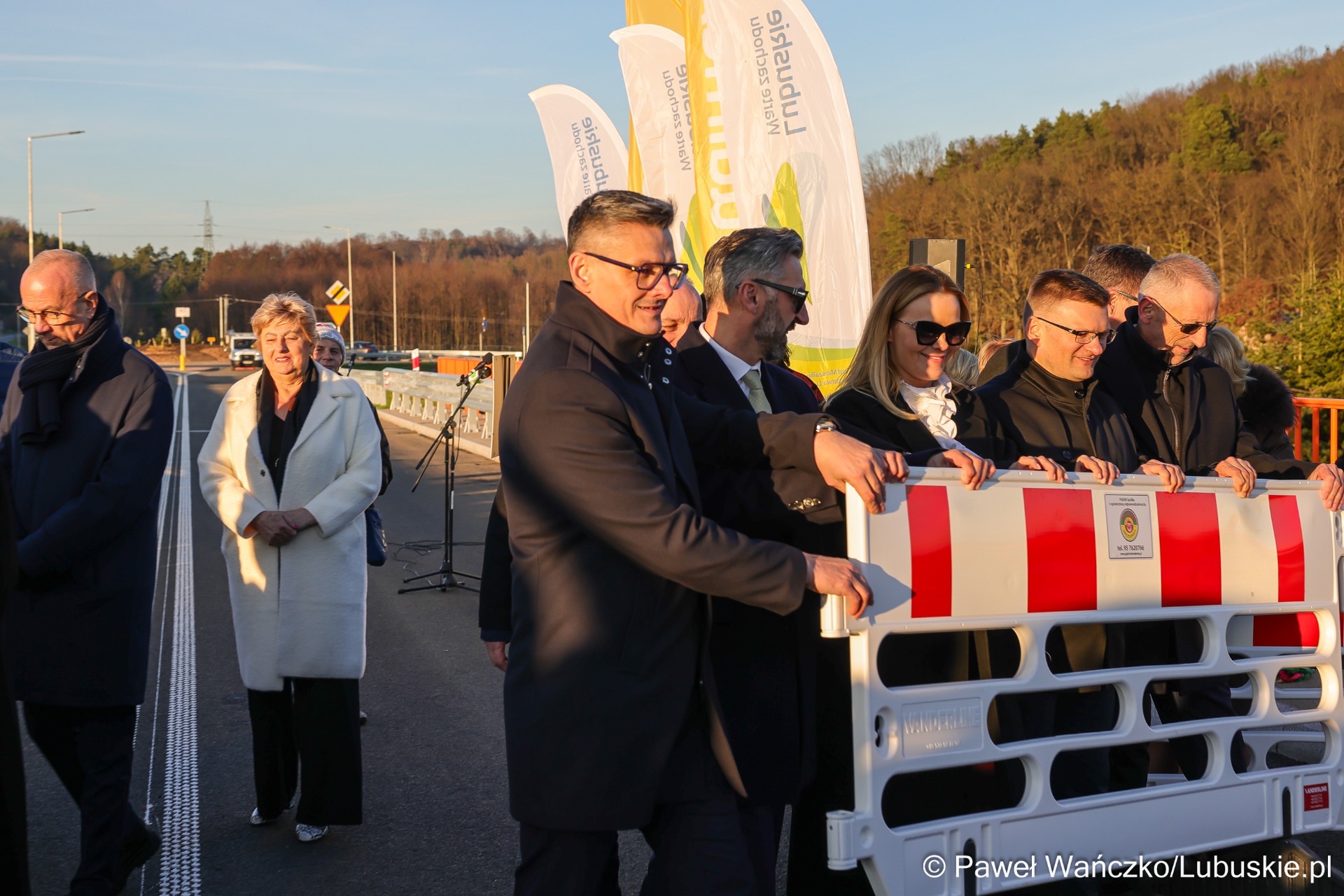 Sebastian Ciemnoczołowski, marszałek województwa lubuskiego: – Witam mieszkańców! Ta inwestycja jest jednym z etapów większej całości i dowodem na to, że sukces w samorządzie jest zawsze efektem pracy wielu ludzi. Nad jej realizacją pracowała prawdziwa sztafeta samorządowców. Dziękuję wszystkim, którzy dołożyli do niej swoją cegiełkę – radnym województwa, parlamentarzystom oraz Zarządowi Dróg Wojewódzkich. Województwo Lubuskie przeznaczyło na ten cel około 50 milionów złotych. To jedno z najtrudniejszych i jak dotąd najdroższych przedsięwzięć drogowych w regionie. Mieliśmy do czynienia z bardzo wymagającym terenem – rzeką, linią kolejową i trasą krajową. Tym bardziej dziękuję wykonawcy, firmie Budimex. Jestem dumny, że mogę dziś zwieńczyć to dzieło.