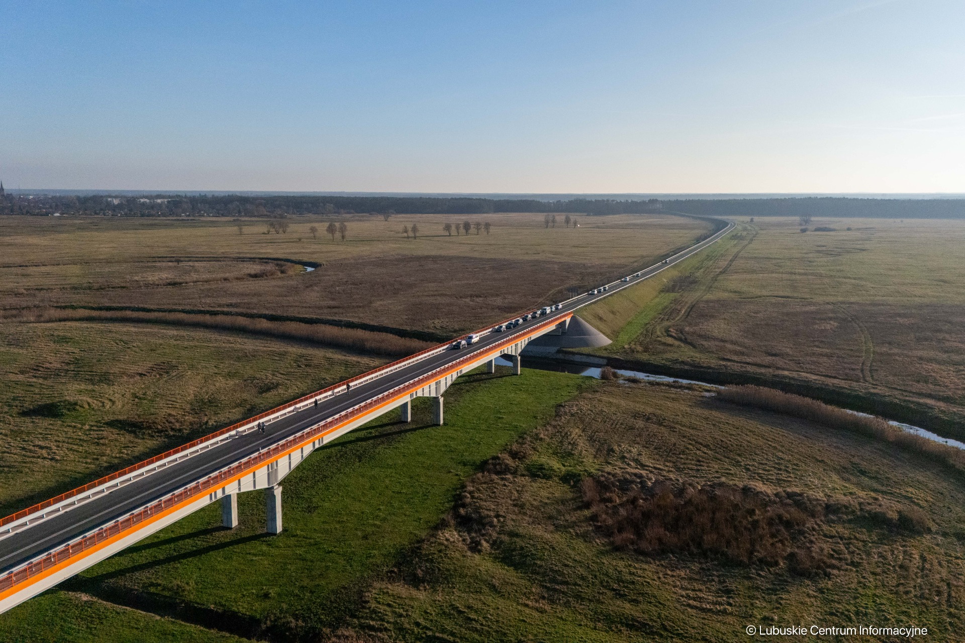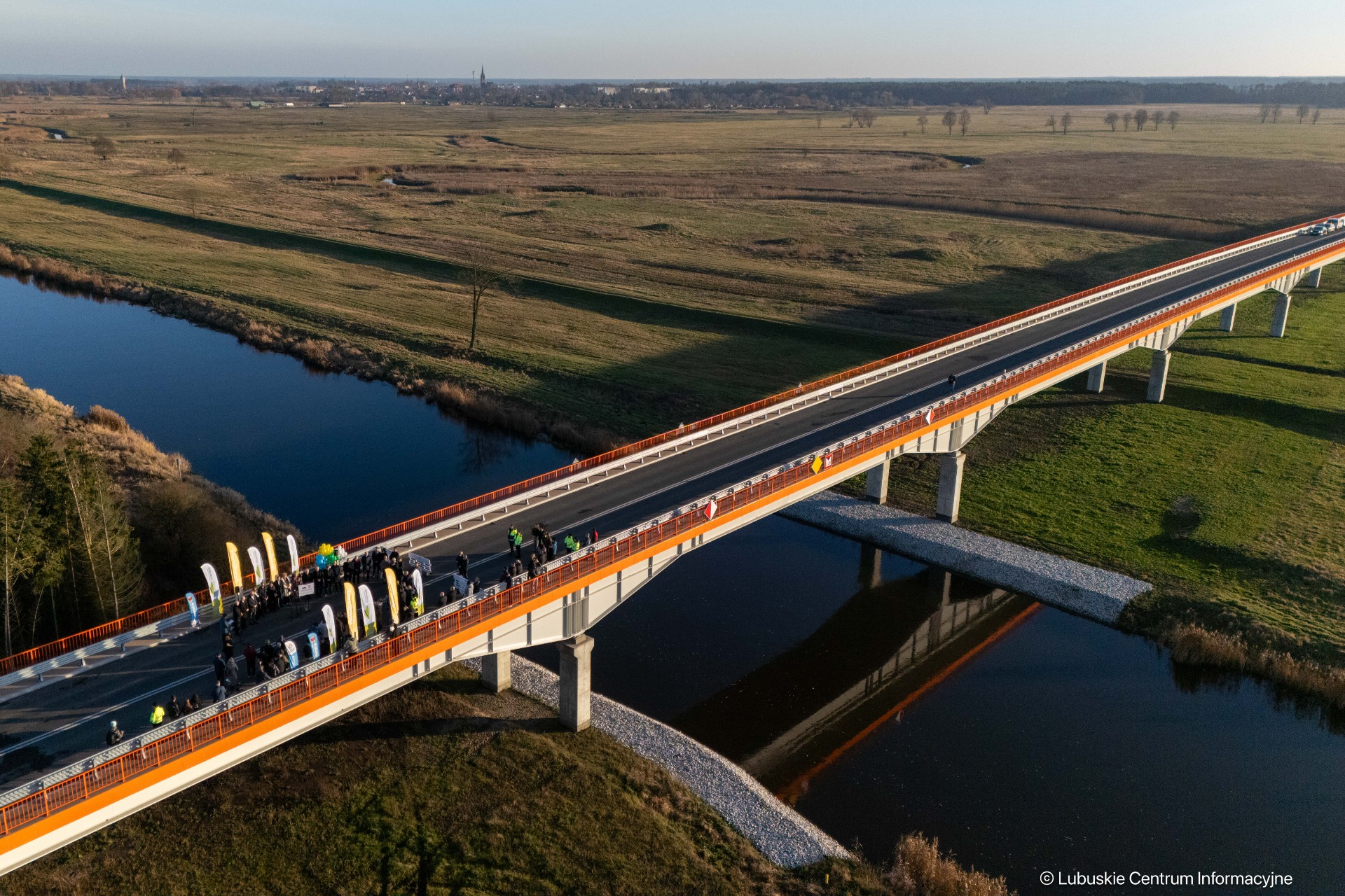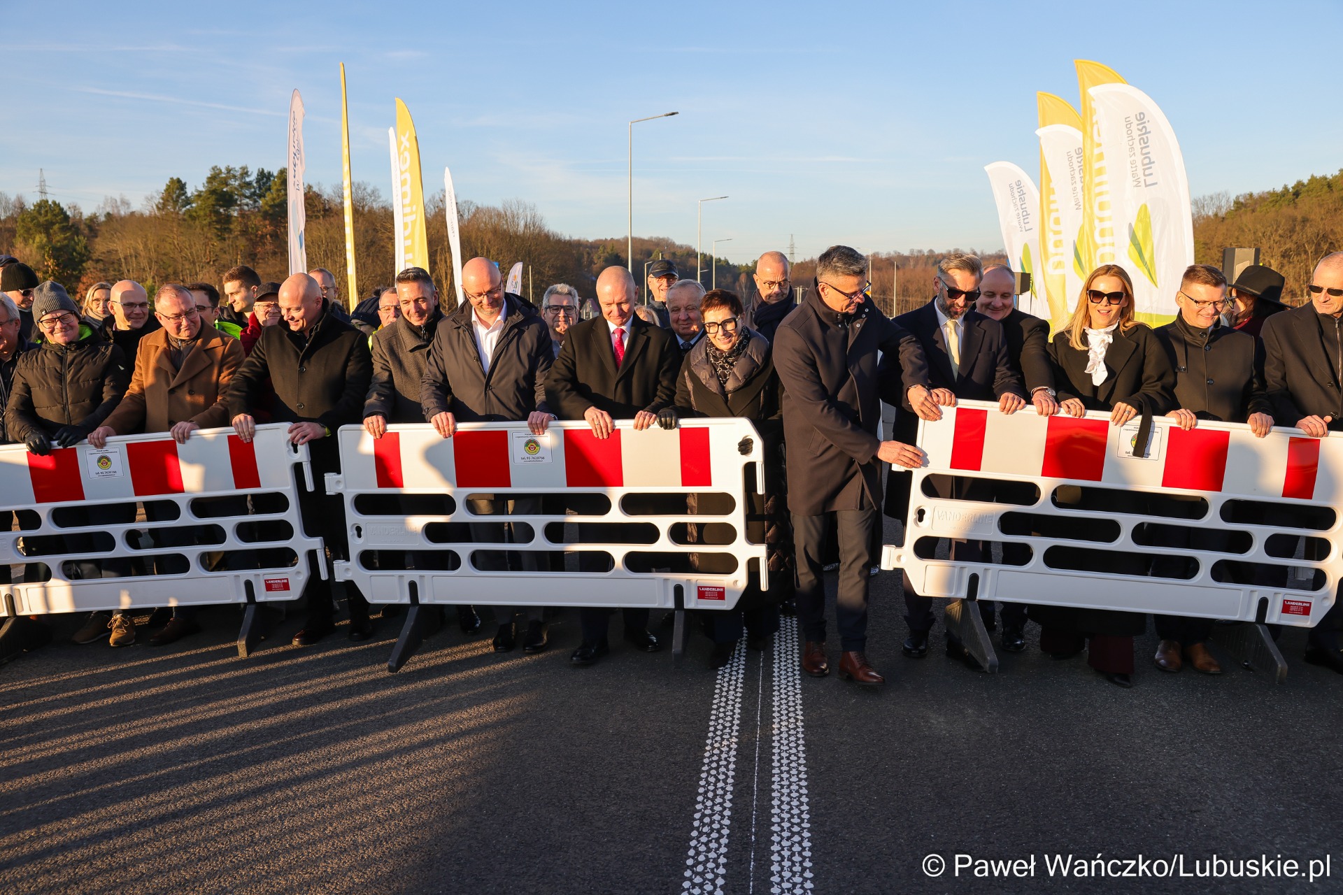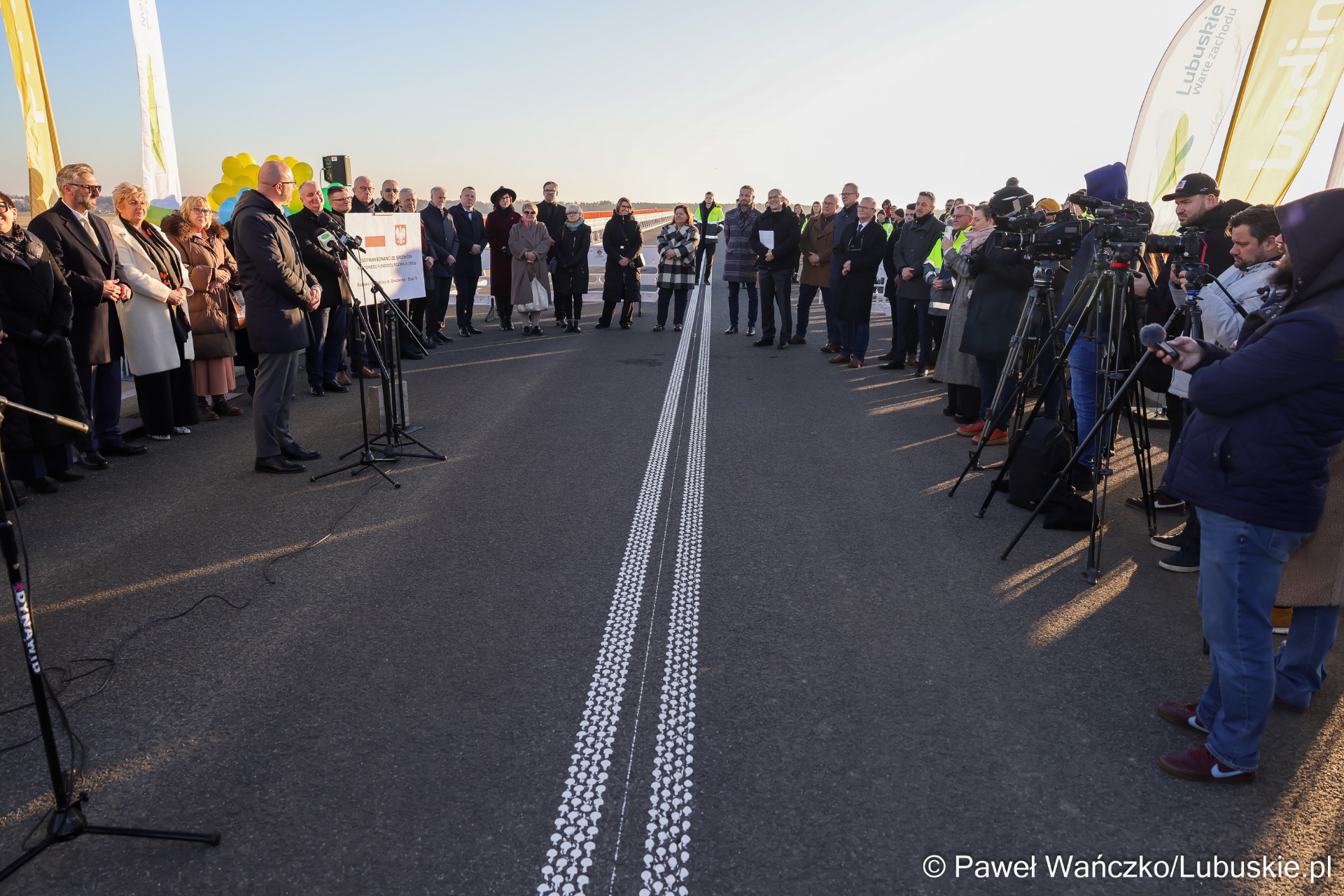 Sebastian Ciemnoczołowski, marszałek województwa lubuskiego: – Witam mieszkańców! Ta inwestycja jest jednym z etapów większej całości i dowodem na to, że sukces w samorządzie jest zawsze efektem pracy wielu ludzi. Nad jej realizacją pracowała prawdziwa sztafeta samorządowców. Dziękuję wszystkim, którzy dołożyli do niej swoją cegiełkę – radnym województwa, parlamentarzystom oraz Zarządowi Dróg Wojewódzkich. Województwo Lubuskie przeznaczyło na ten cel około 50 milionów złotych. To jedno z najtrudniejszych i jak dotąd najdroższych przedsięwzięć drogowych w regionie. Mieliśmy do czynienia z bardzo wymagającym terenem – rzeką, linią kolejową i trasą krajową. Tym bardziej dziękuję wykonawcy, firmie Budimex. Jestem dumny, że mogę dziś zwieńczyć to dzieło.
