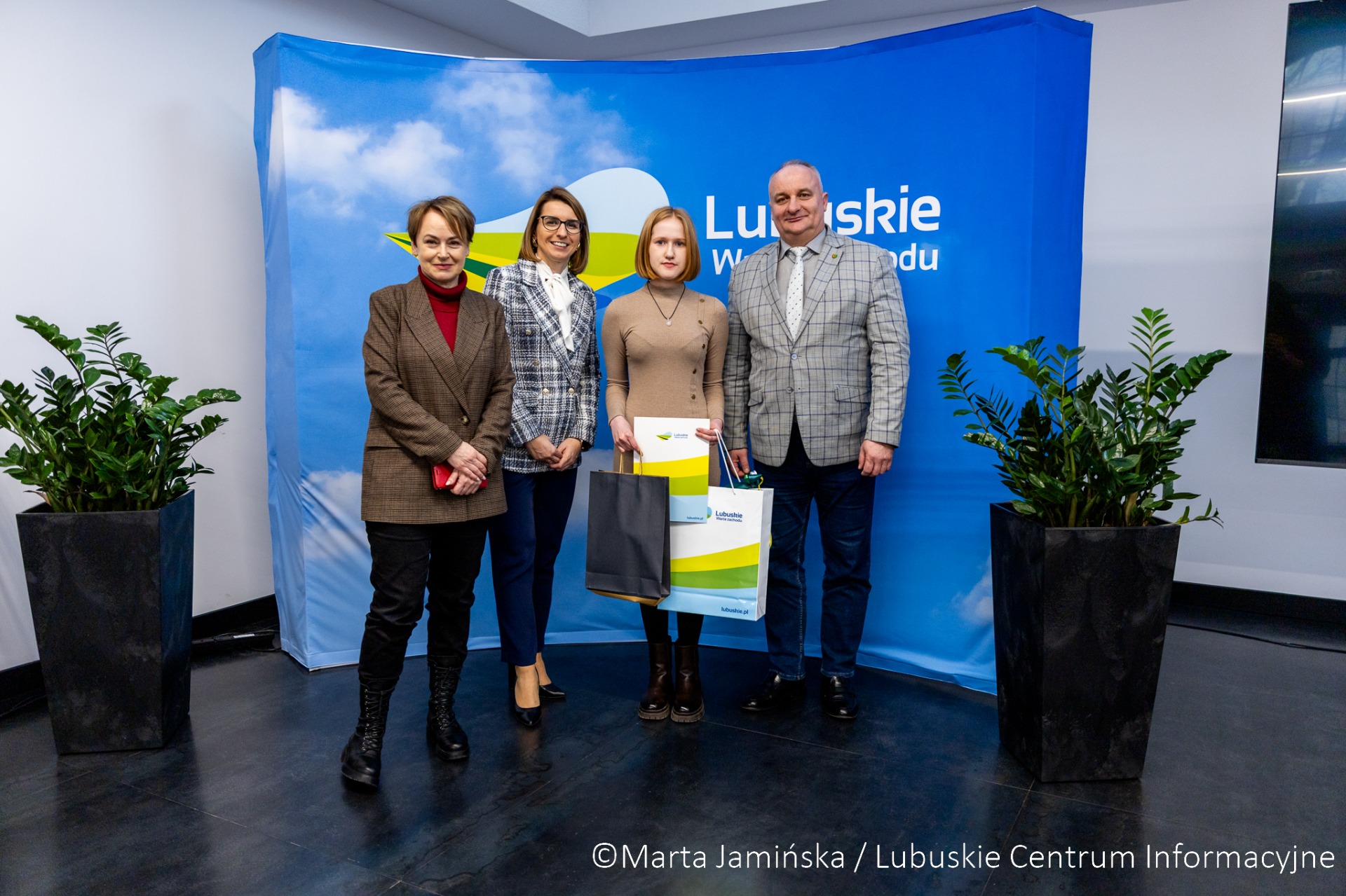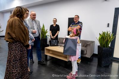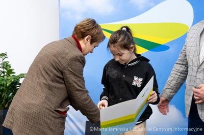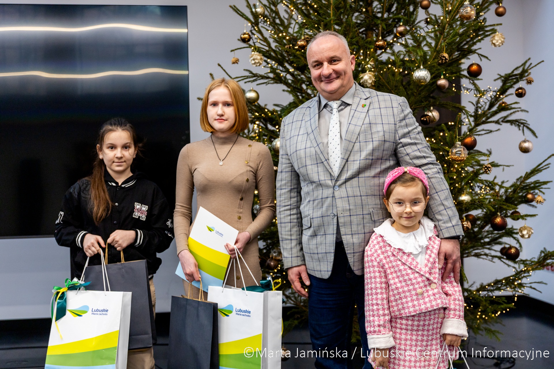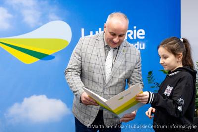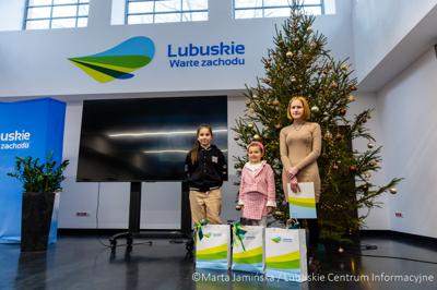 W siedzibie Biura Zamiejscowego Urzędu Marszałkowskiego w Gorzowie Wlkp. wicemarszałek województwa Hubert Harasimowicz i dyrektor Biura Zamiejscowego Natalia Burdz wręczyli nagrody laureatkom konkursu na świąteczną kartkę urzędu - uczennicom szkół z północy regionu.
