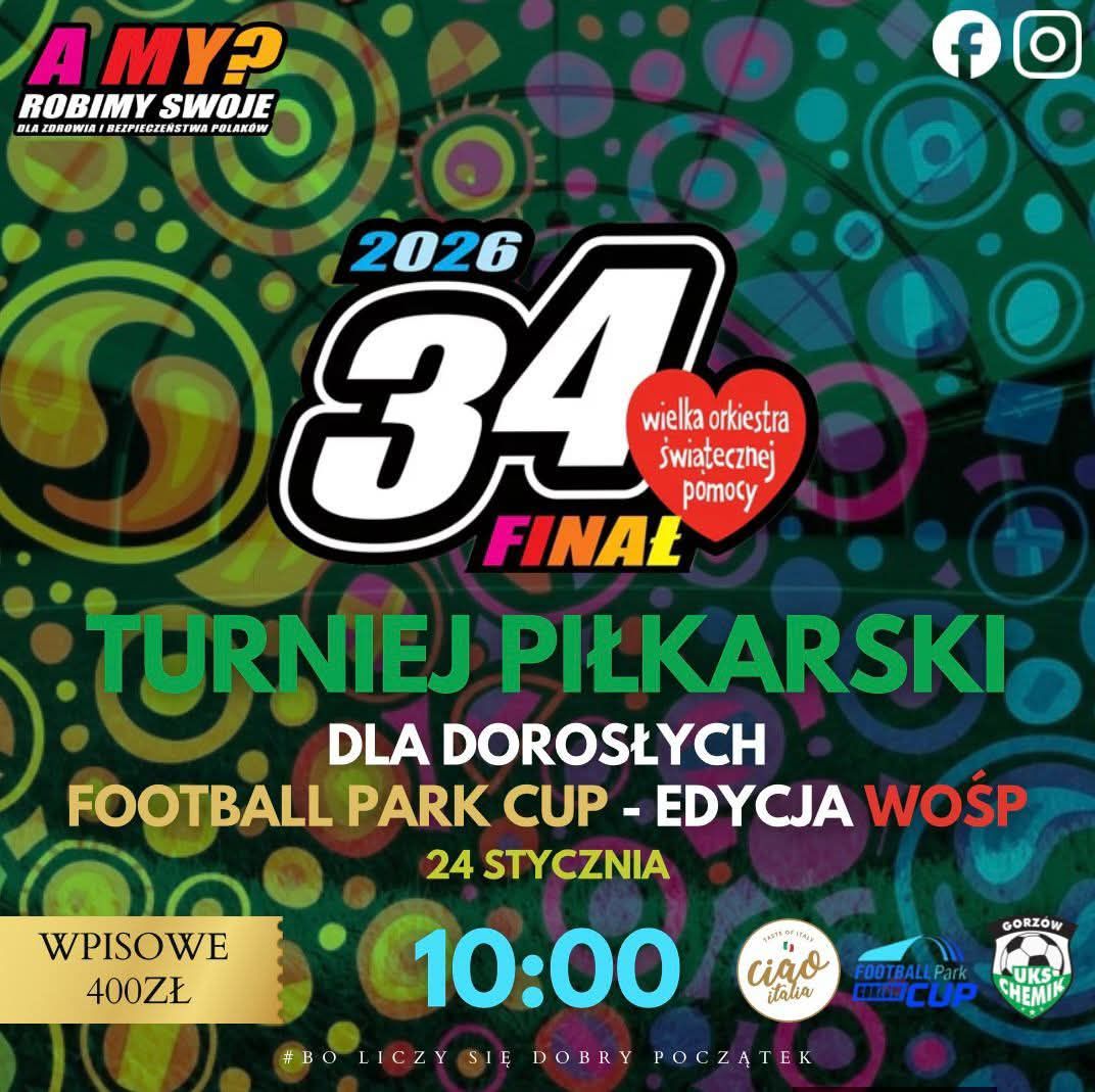 W sobotę 24 stycznia 2026 r. od godziny 10:00 klub UKS Chemik Gorzów zaprasza na turniej piłki nożnej dla dorosłych. Zawody zostaną rozegrane w Football Parku przy ulicy Stanisławskiego 2. Wpisowe: 400 złotych. Zgłoszenia i więcej informacji – pod numerem telefonu 69648966.
