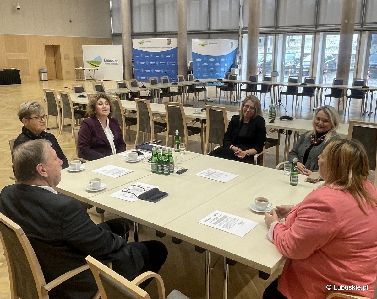 Przewodniczący WRDS w województwie lubuskim Henryk Maciej Woźniak spotkał się z Mają Nowak Sekretarzem Stanu-Pełnomocnikiem Rządu ds. Osób Niepełnosprawnych. W spotkaniu uczestniczyły również Małgorzata Lorek - Prezes Zarządu Państwowego Funduszu Rehabilitacji Osób Niepełnosprawnych, Elżbieta Miernik-Krukurka - Dyrektor Lubuskiego Oddziału PFRON, Anna Chinalska - Członek Zarządu Województwa Lubuskiego oraz Małgorzata Łukiewska - Zastępca Dyrektora Departamentu Organizacyjno-Prawnego UMWL.