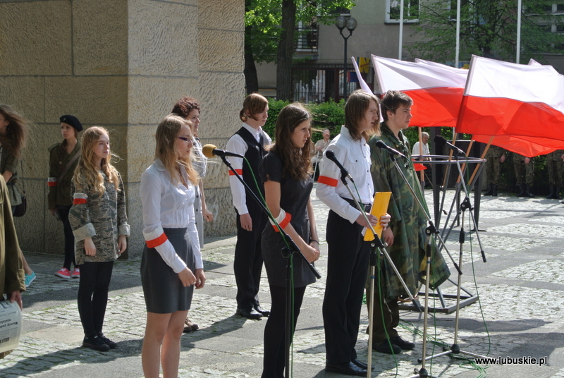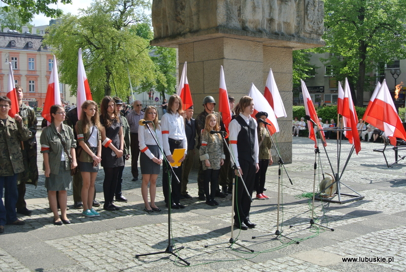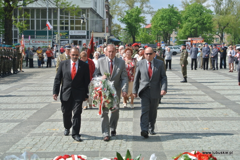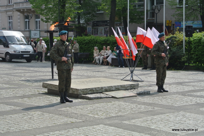 Po jej zakończeniu nastąpił przemarsz pocztów sztandarowych, kompanii honorowej, orkiestry wojskowej oraz pozostałych uczestników uroczystości pod Pomnik na Plac Bohaterów gdzie odbyło się zgromadzenie patriotyczne z udziałem mieszkańców miasta, na które złożyło się: powitanie uczestników, apel pamięci, montaż poetycki, słowno-muzyczny ,,Zwycięstwo przyszło w maju'' w wykonaniu młodzieży z Zespołu Szkół Akademickich w Zielonej Górze, złożenie wiązanek kwiatów i zapalenie zniczy.
